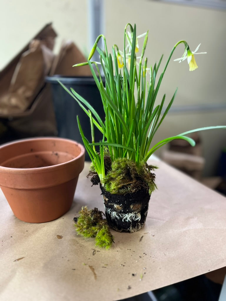 Available beginning in MID February, we coax bulbs primarily for our workshops, but we share all the extra goodness with those in need. A 6" terra cotta pot stuffed with all the bulbs that fit. Any of our vessels will make a beautiful garden or feel free to bring us your favorite! Fragrant hyacinth and fancy narcissus combine with elegant tulips and bits of blue ephemerals for a symphony of Spring. Dressed with moss, our gardens can be delivered or available for pick up near Vanderbilt University.